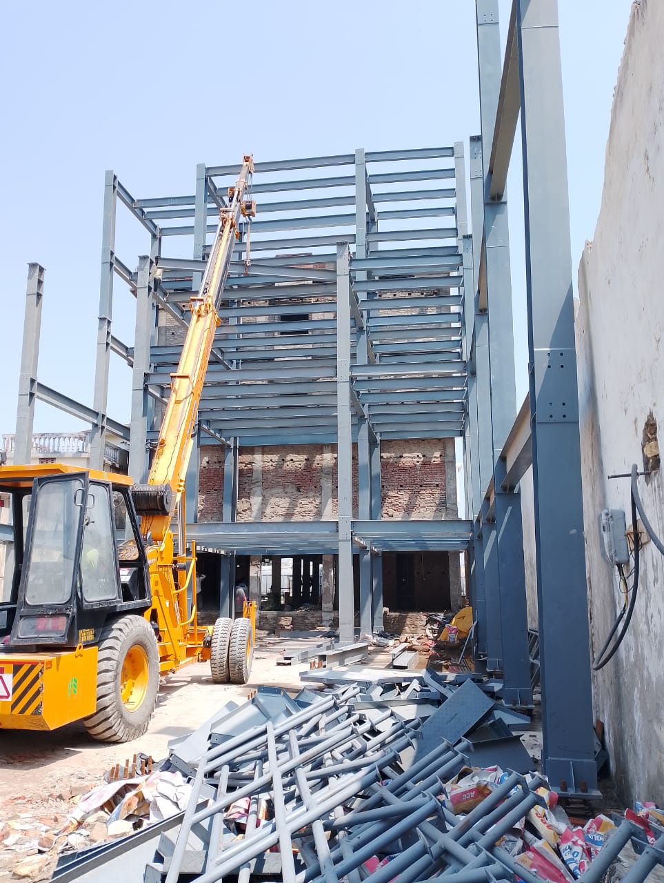Structural erection using pre-fabricated steel members, roofing, cladding & advanced features mezzanine construction and column-free long spans.